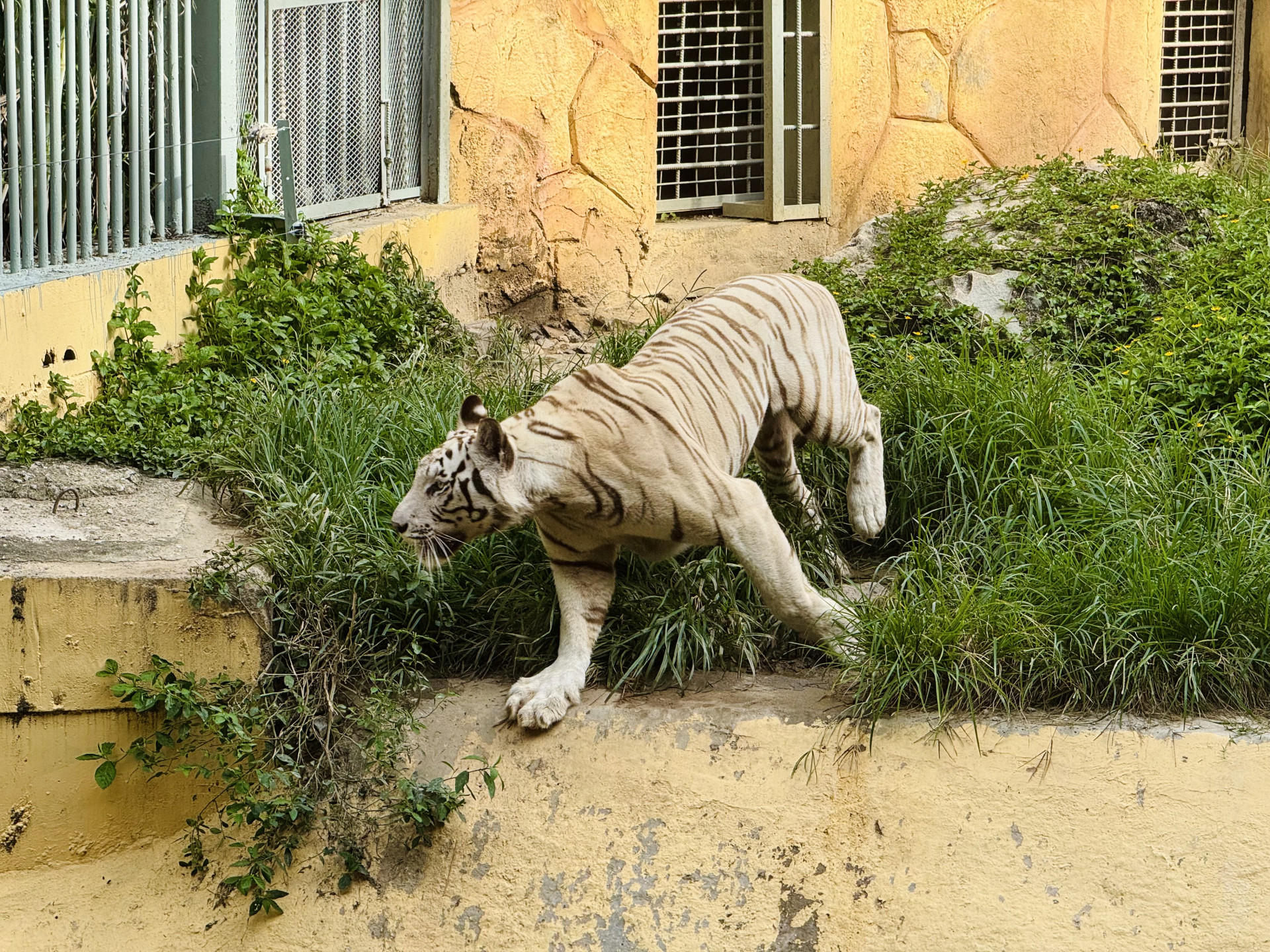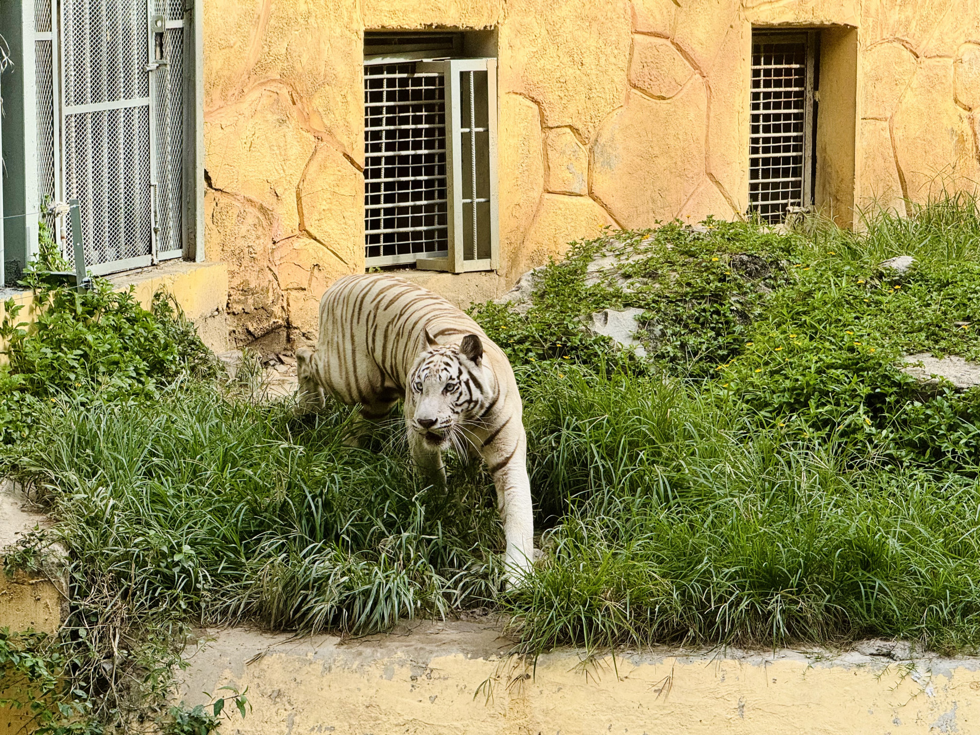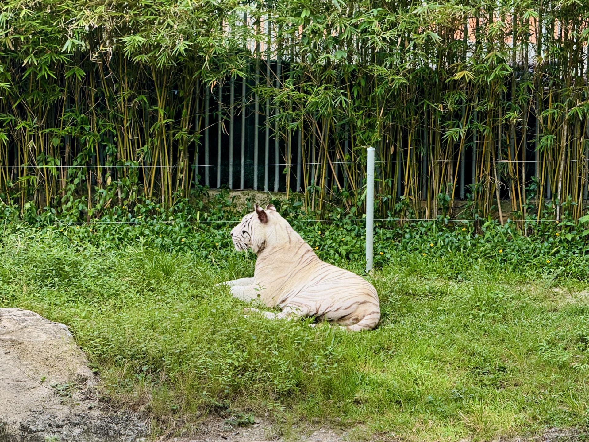 В зоопарке из интересного я видел двух белых тигров, вроде бы впервые в жизни. Это не отдельный вид, просто тигры с мутацией, но они встречаются крайне редко, здесь же их целых два. В одном вольере, но держались в основном порознь, поэтому я сделал только одно совместное фото.