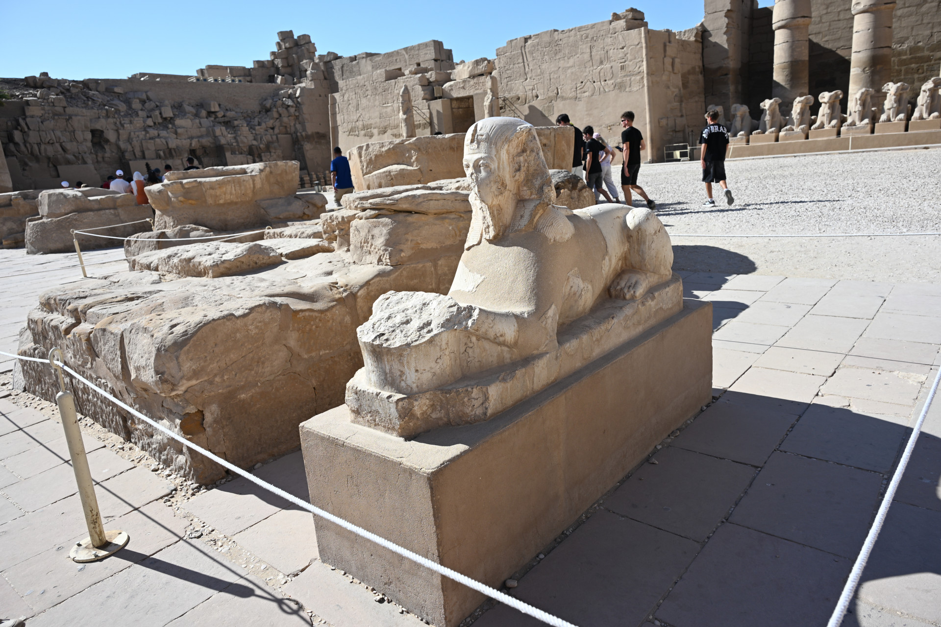 Карнакский храм в Луксоре, где мы с моей любовью были вчера, самый большой из ныне известных древнеегипетских храмов. А точнее его можно назвать храмовым комплексом. Он строился частями, каждая из которых возводилась под руководством царей и целых династий. Верования древних египтян базировались в основном на их представлениях о солнце, луне и звёздах. Во время ритуальных процессий сквозь все части храма проносили каменные ладьи с изображениями Ра или Амона-Ра (гибрида Амона и Ра), Хонсу и Мут. Путь начинался с аллеи баранов с телами львов, символизирующих Амона. В связи с тем, что данная религия просуществовала в течение многих тысячелетий, ипостаси богов, а также их родственные отношения неоднократно претерпевали изменения.