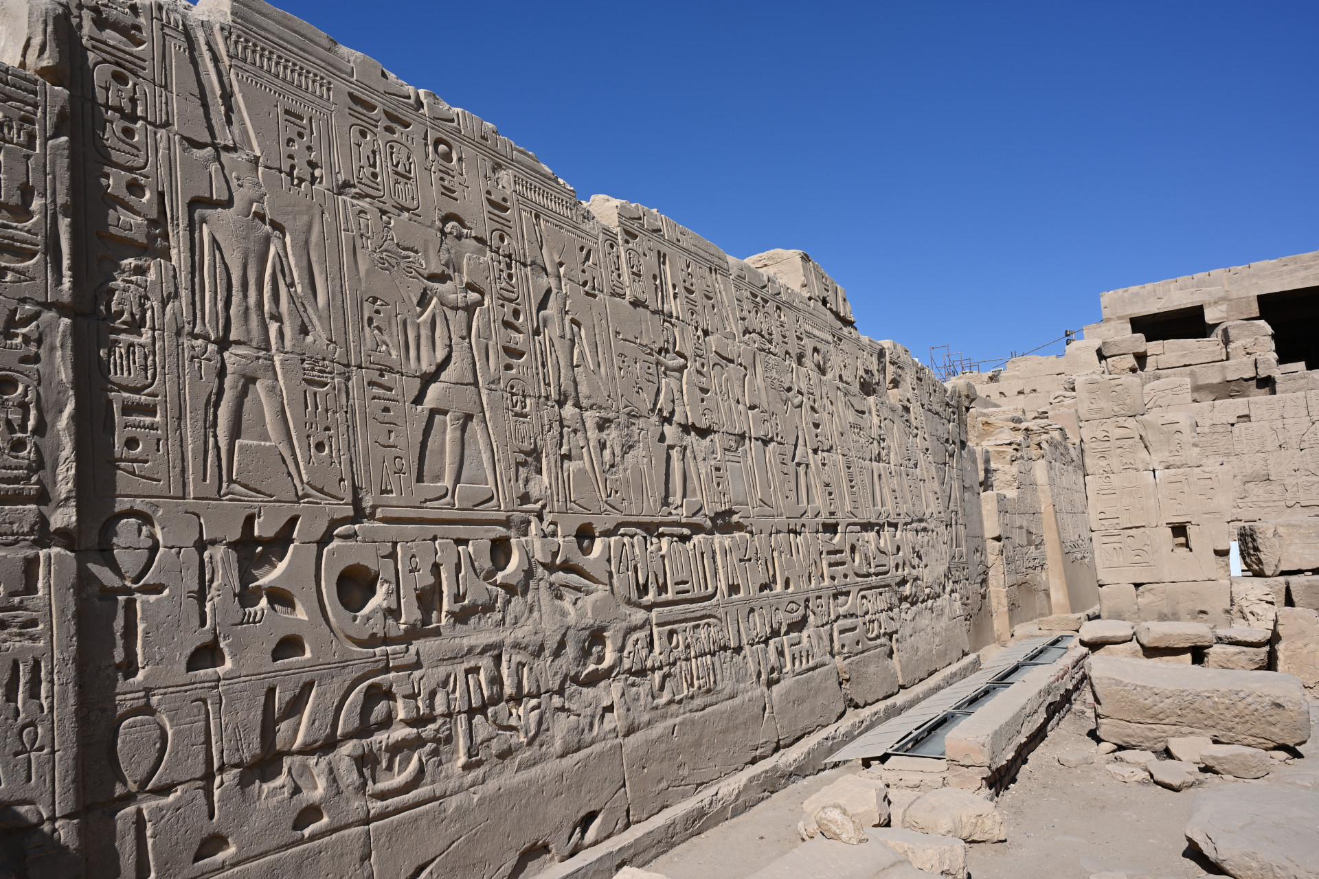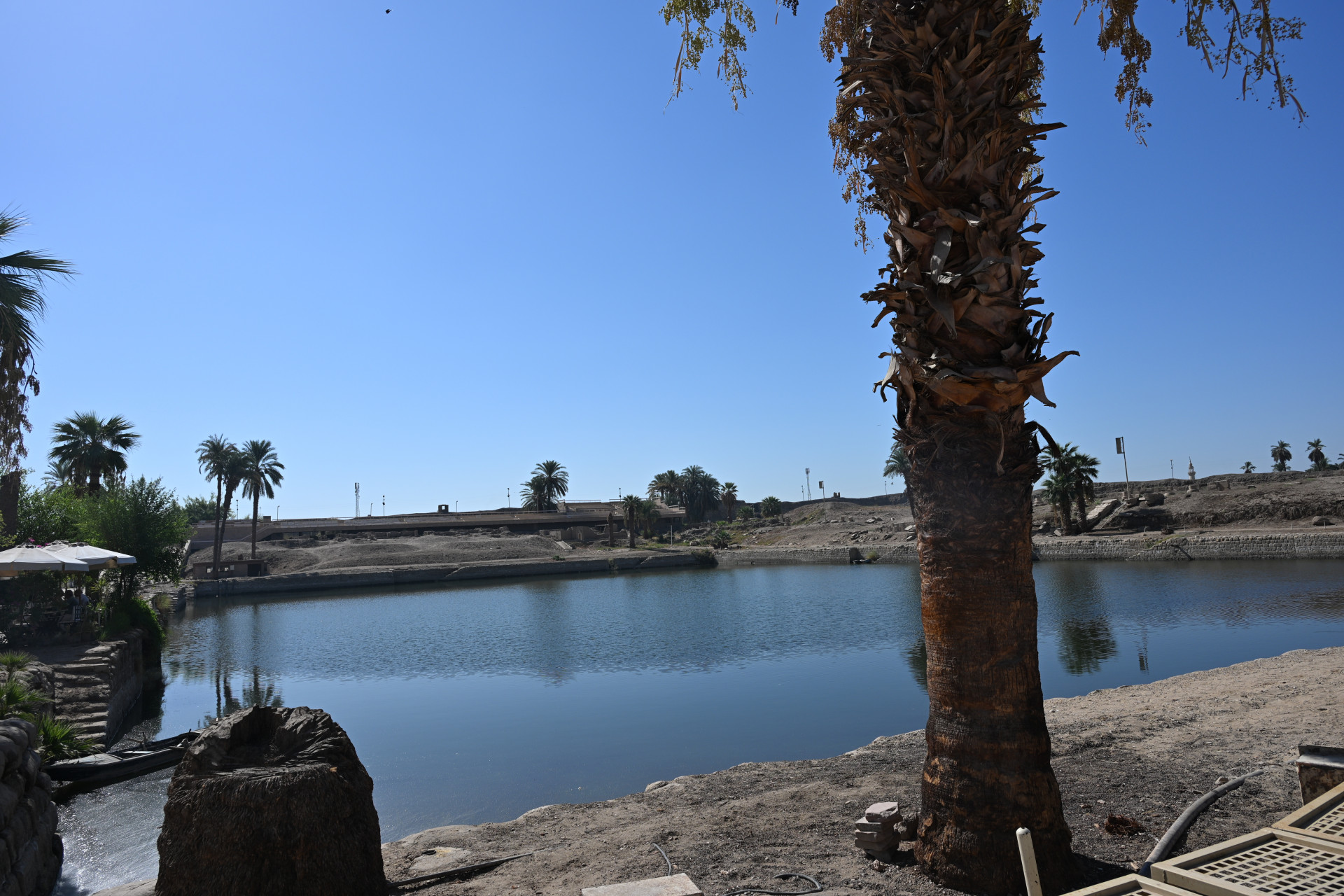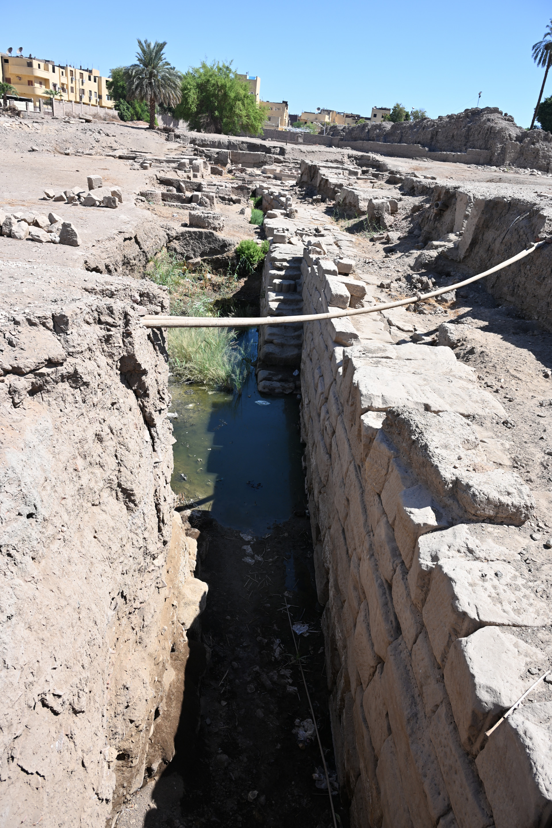 Храмовый комплекс был окружен рвом, по которому текли воды Нила. Ныне же Нил в виду тысячелетних изменений ландшафта течёт за многие километры отсюда. Ров же теперь выглядит непримечательно. Подземная вода, которая течёт. (с) гид Махер. И последнее - искусственный водоём для ритуальных омовений.