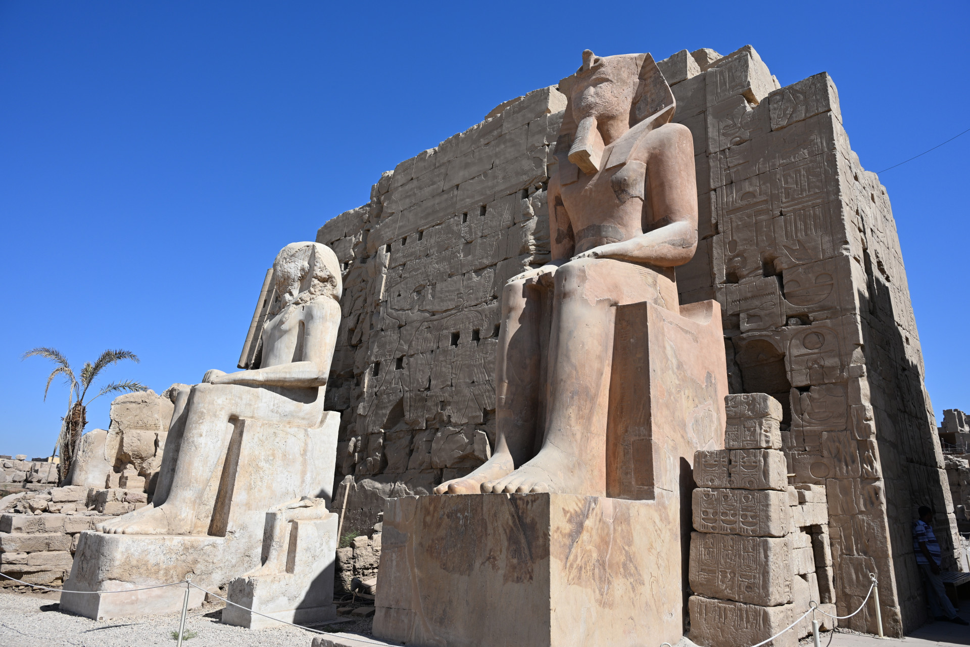Коллосы Мемнона. Когда-то "поющие статуи" издавали звуки за счет испарения влаги, но больше не издают.